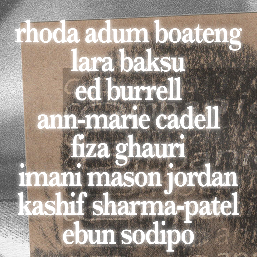 The poets invited to read at this event are: Rhoda Adum Boateng, Lara Baksu, Ed Burrell, Ann-Marie Cadell, Fiza Ghauri, Imani Mason Jordan, Kashif Sharma-Patel, Ebun Sodipo.