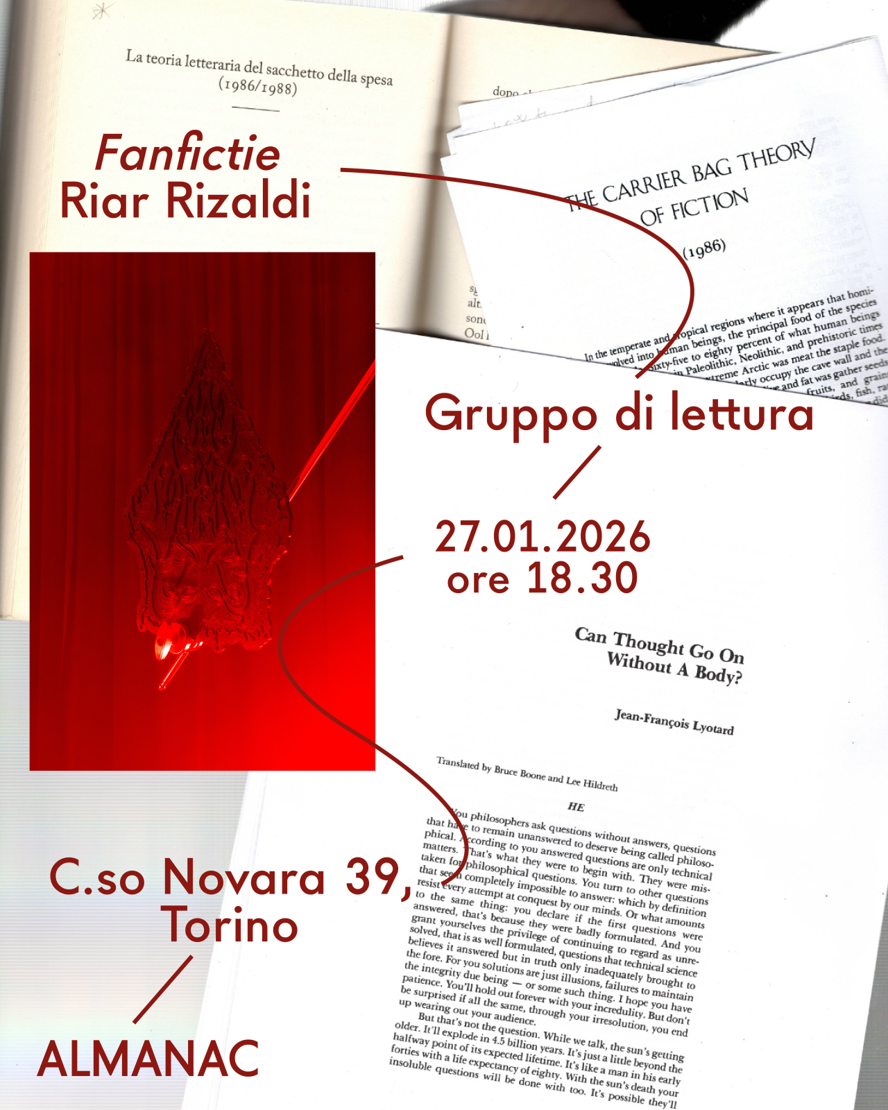 During the evening, we will read and discuss selected excerpts from The Carrier Bag Theory of Fiction by Ursula K. Le Guin and Can Thought Go on Without a Body? by Jean-François Lyotard.
