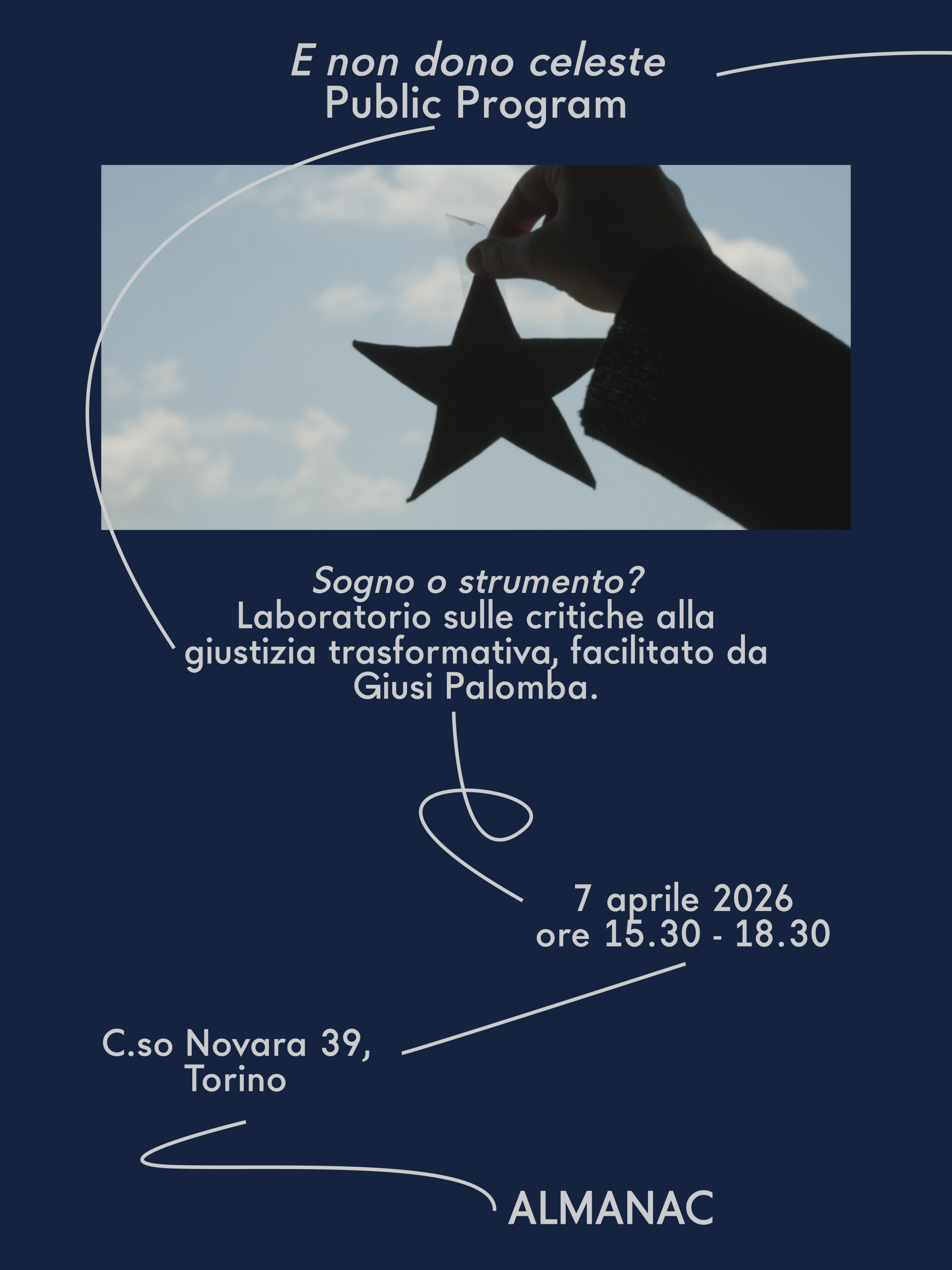 Sogno o strumento? Workshop on critiques of transformative justice is an open, facilitated workshop/forum curated by Giusi Palomba and Cristina Lavosi.