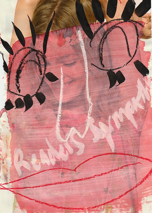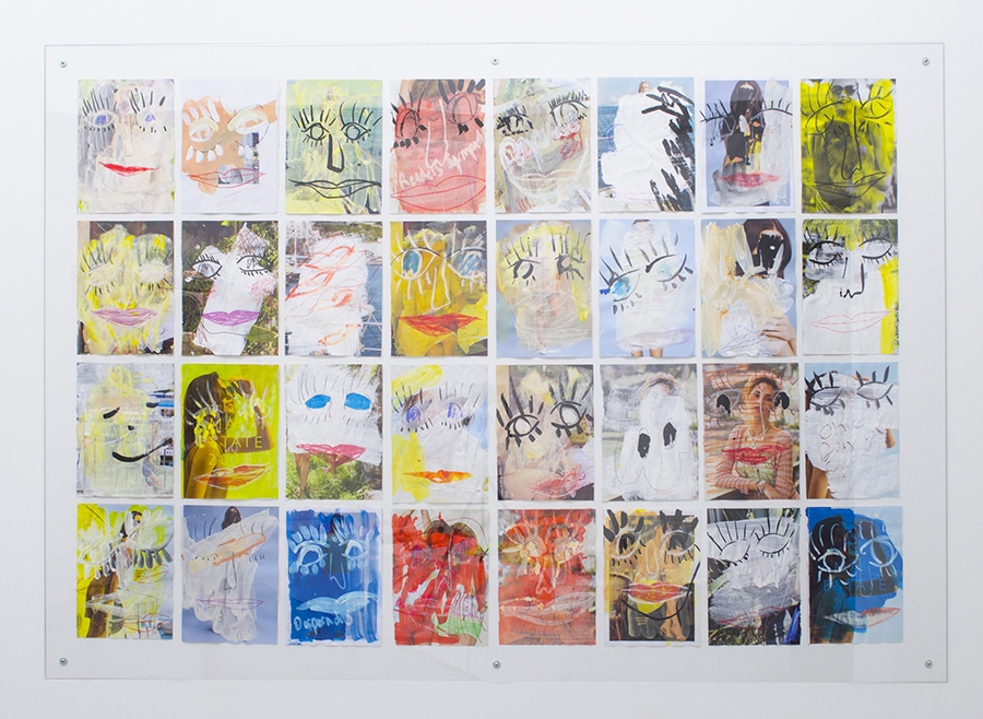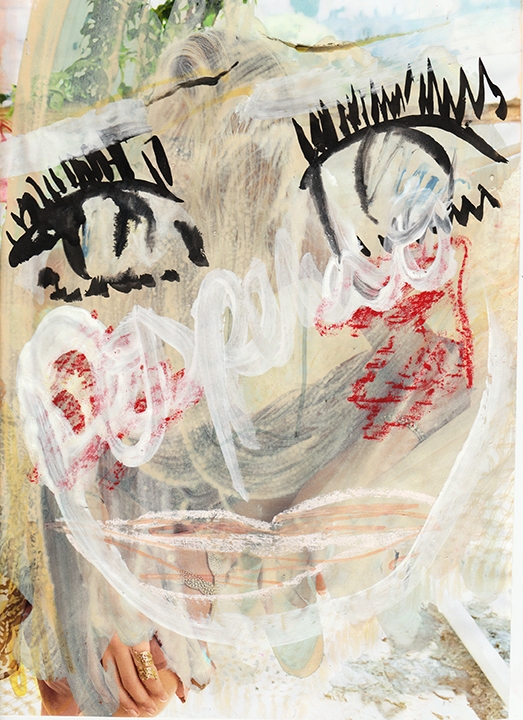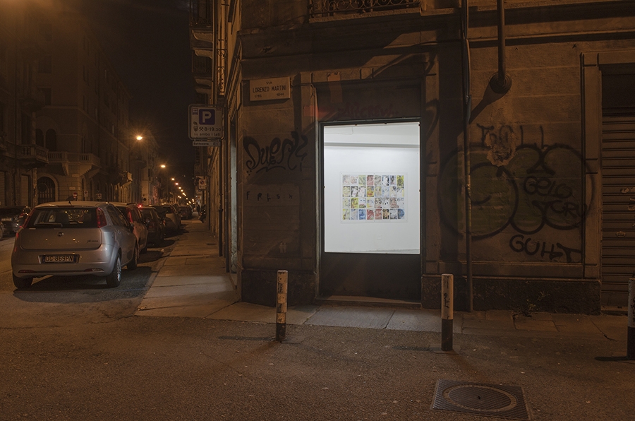 Okie Dog on Santa Monica, 2015, acrylic, marker, ink, crayon, pencil, oil pastel, on free magazines collected on Via Roma, Torino, 220 x 140cm.