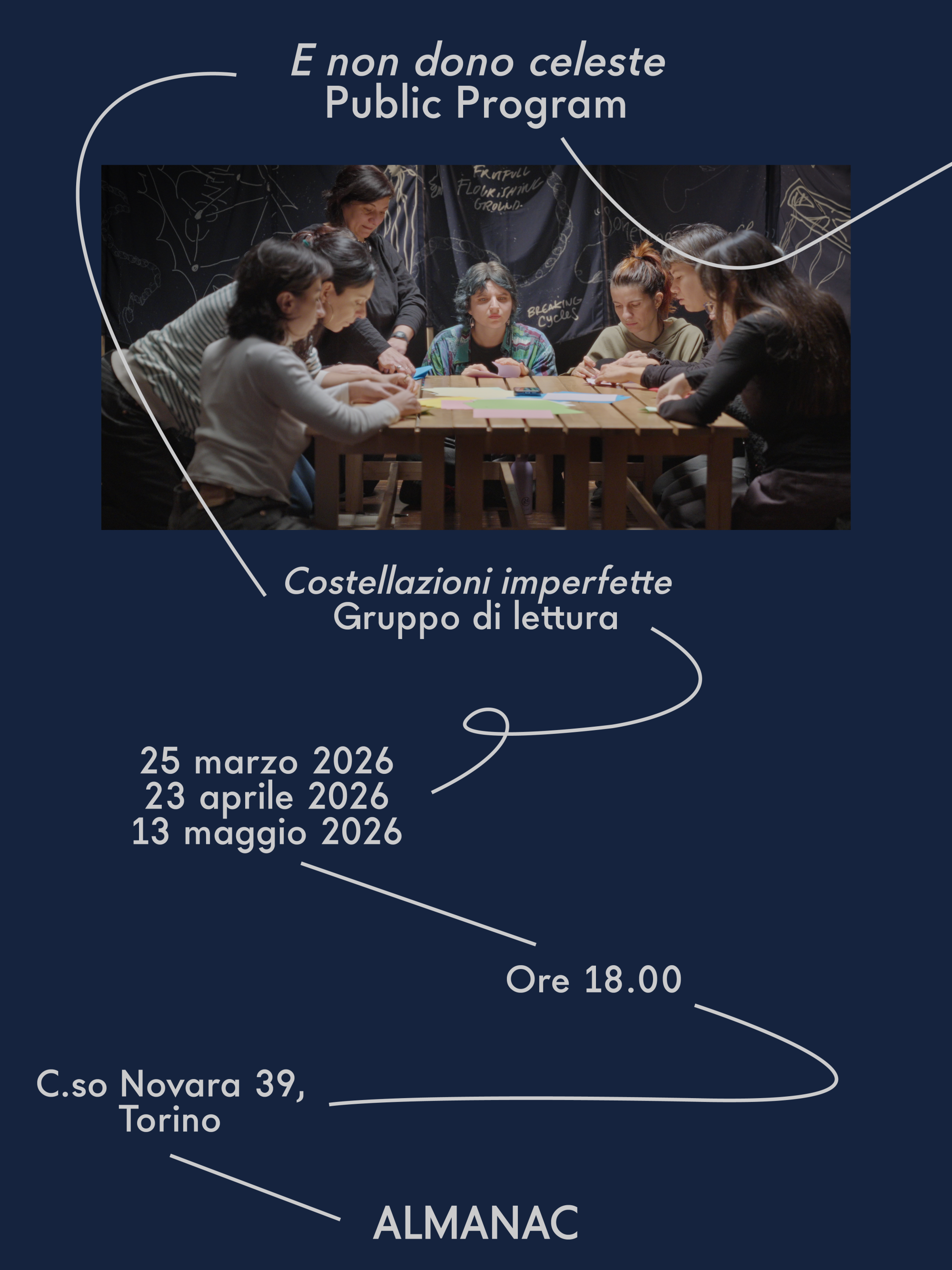 Il 25 marzo continua il public program della mostra “E non dono celeste” di Cristina Lavosi con il primo appuntamento della serie di gruppi di lettura “Costellazioni imperfette” a cura di ULIT—Un Limone In Tasca.